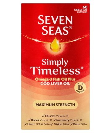 Seven Seas Simply Timeless Omega-3 Fish Oil with Cod Liver Oil, Maximum Strength 60 Capsules