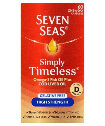 Seven Seas Simply Timeless Omega-3 Oil with Cod Liver Oil, High Strength Gelatine Free 60 Capsules