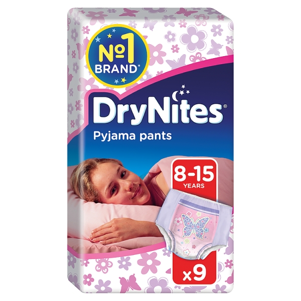 Visit www.drynites.co.uk for more information DryNites pyjama pants Night time pants specifically designed to be worn under pyjamas discreetly 9 pyjama pants per pack