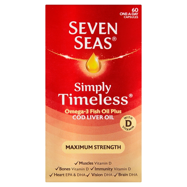Be the first to review “Seven Seas Simply Timeless Omega-3 Fish Oil with Cod Liver Oil, Maximum Strength 60 Capsules”